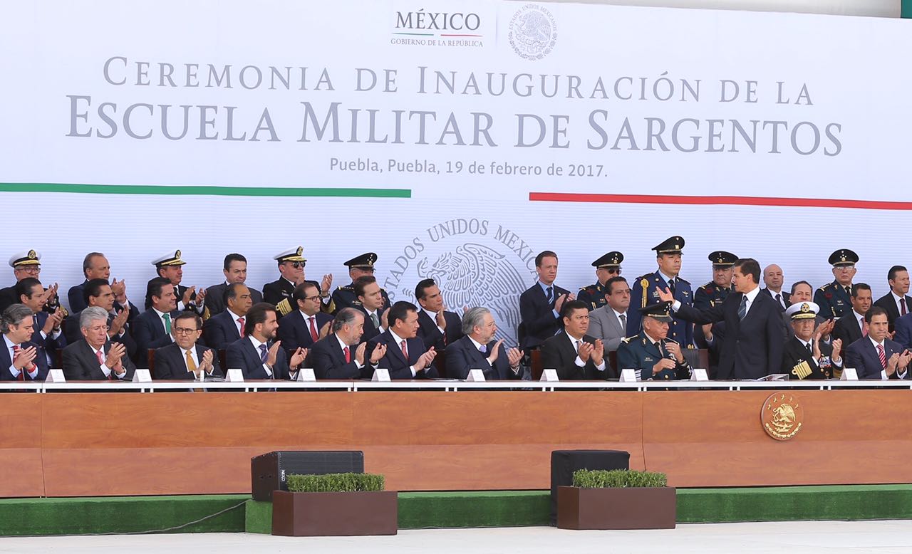 Puebla, Puebla, a 19 de febrero de 2017.- Los integrantes de las Fuerzas Armadas de México de manera desinteresada contribuyen al bien común de las y los ciudadanos, por lo que debemos guardarles gratitud y respeto, destacó el Gobernador de Michoacán Silvano Aureoles Conejo, al acudir como invitado especial a la entrega de la Escuela Militar de Sargentos y remodelación del Hospital Militar Regional del Campo Militar 25-A Puebla, evento presidido por el Presidente de México, Enrique Peña Nieto, y los secretarios de Gobernación, Miguel Ángel Osorio Chong; de la Defensa Nacional, general Salvador Cienfuegos Zepeda y de Marina, almirante Vidal Francisco Soberón Sanz.