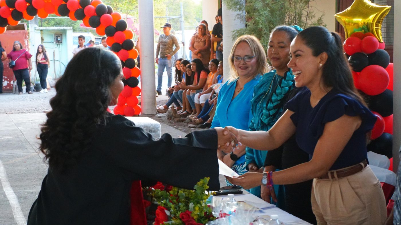 “Felicito a todos quienes han concluido sus estudios de manera satisfactoria y exitosa, agradezco que me hayan distinguido con ser su madrina de generación, desde aquí les digo, cuenten conmigo siempre y en todo momento”, finalizó.