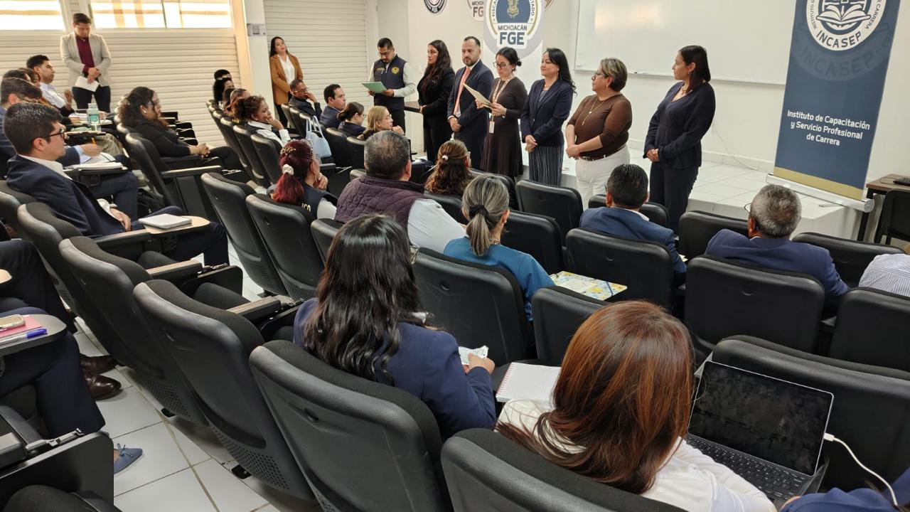 Morelia, Mich, a 11 de Diciembre de 2025.- La Fiscalía General del Estado de Michoacán (FGE), a través del Instituto de Capacitación y Servicio Profesional de Carrera (INCASEP), llevó a cabo el curso-taller “Profesionalización del personal de las áreas de investigación en feminicidio y búsqueda de mujeres en situación de no localización y desaparición”, impartido por la especialista Lucero Circe López Riofrío.