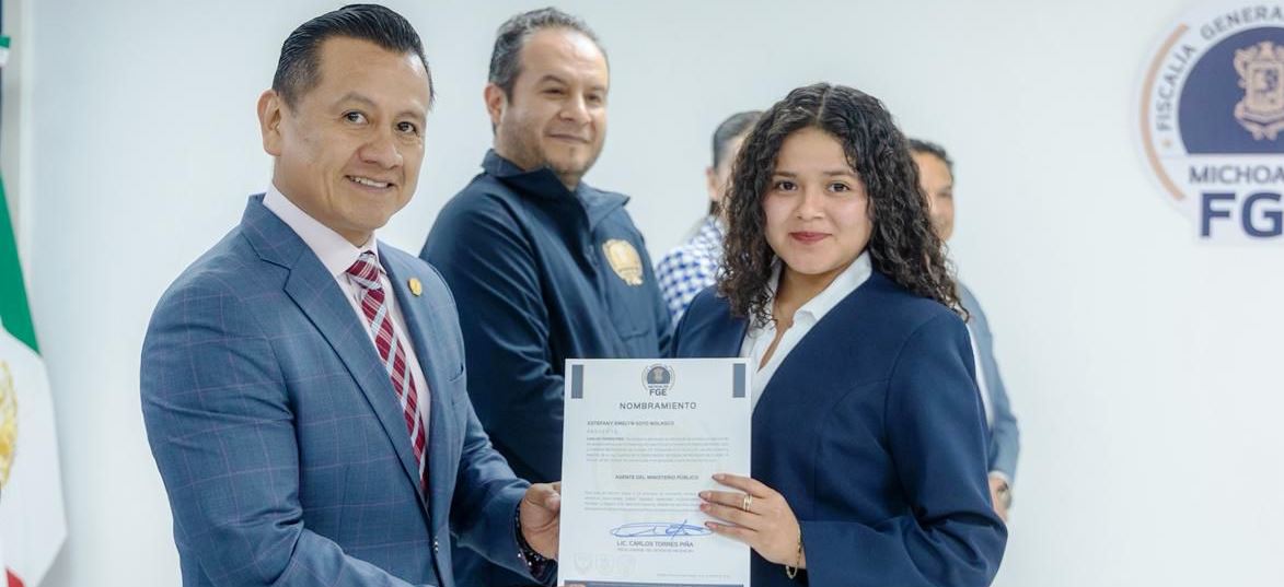 Morelia, Mich, a 18 de Noviembre de 2025.- ”La Fiscalía General del Estado de Michoacán (FGE) dio un paso firme en su proceso de transformación institucional al recibir a una nueva generación de 15 agentes del Ministerio Público y 18 peritos, seleccionados por obtener los puntajes más altos en un proceso de concurso transparente, exigente y abierto a personal interno y externo”, Carlos Torres Piña.