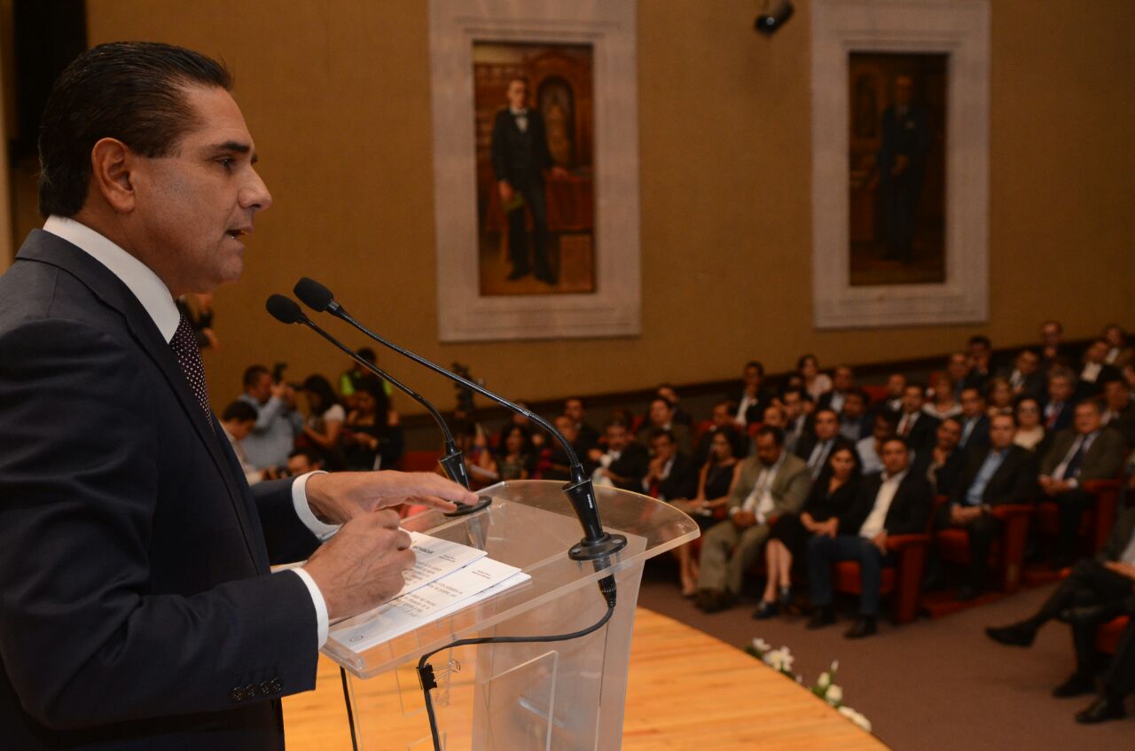 La verdad es que faltaría poco por decir, una vez que tanto el señor Rector como el Secretario de Gobierno han ilustrado las razones que nos convocan hoy aquí, pero no está de más compartirles algunas reflexiones ante tan distinguido auditorio, este extraordinario auditorio de michoacanas y michoacanos y agradezco también la presencia de mis compañeras y compañeros titulares de otras áreas del Gobierno, la presencia aquí de la ex rectora, titular de Educación, la doctora Figueroa muchas gracias secretaria, así como varios compañeros del gabinete del Gobierno Estatal y Federal.