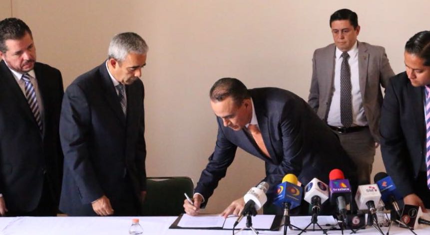 Morelia, Michoacán, 30 de agosto de 2018.- “El Testamento significa certidumbre, tranquilidad y seguridad en el patrimonio de una persona, una vez que fallece”, indicó el secretario de Gobierno, Pascual Sigala Paéz, al firmar el convenio con el Consejo del Colegio de Notarios de Michoacán, A.C., para llevar a cabo la campaña 2018 del Mes del Testamento.