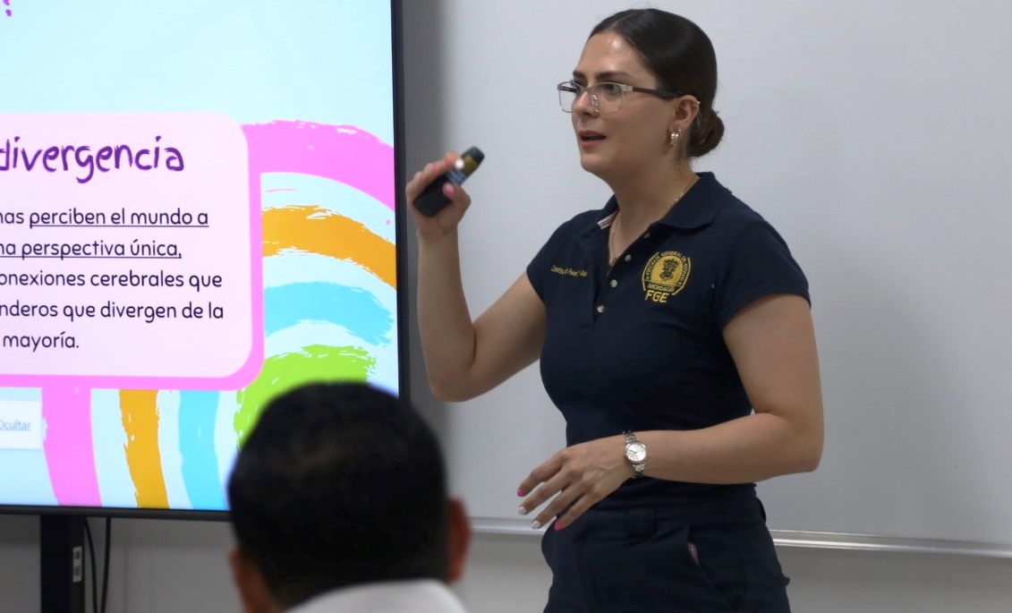 Morelia, Mich, a 16 de Junio de 2025.- Con el objetivo de garantizar la mejor atención a todas las personas que requieran sus servicios, la Fiscalía General del Estado de Michoacán (FGE) capacitó al personal de la Unidad de Cartas de No Antecedentes Penales de la Subcoordinación de Trámites y Servicios en materia de atención de personas neuro divergentes.