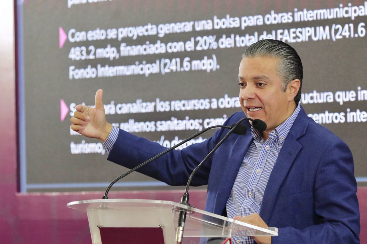 En ese sentido, anticipó, los interesados deberán «aplicar un porcentaje de sus recursos Faeispum para convenir obras que beneficien a dos o más municipios». De esta manera, agregó, será posible «generar una bolsa para obras intermunicipales de hasta 483.2 millones de pesos, financiado con el 20 por ciento del total del Faeispum, equivalente a 241.6 millones de pesos, más el nuevo Fondo Intermunicipal que constará de 241.6 millones de pesos.