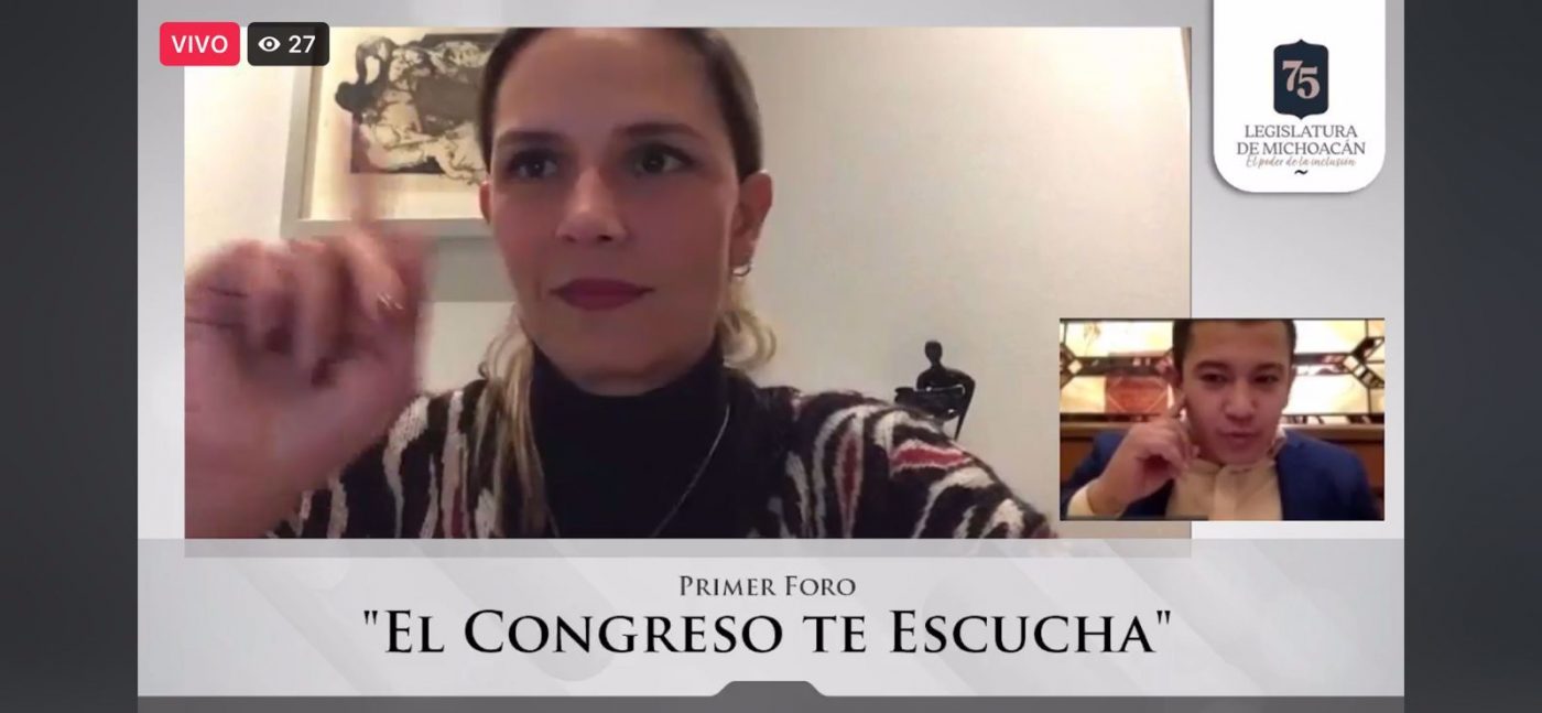 Las iniciativas presentadas fueron cuatro; la primera la expuso la joven estudianteuniversitaria, Yareni Karla Pérez Vega, y está relacionada con la promoción de la Enseñanza de la lengua de señas mexicana en las escuelas públicas de Michoacán, esto en el ánimo de promover la inclusión desde la educación básica y con ello lograr que más niños y niñas en condición de sordera puedan acceder a formación académica pública.