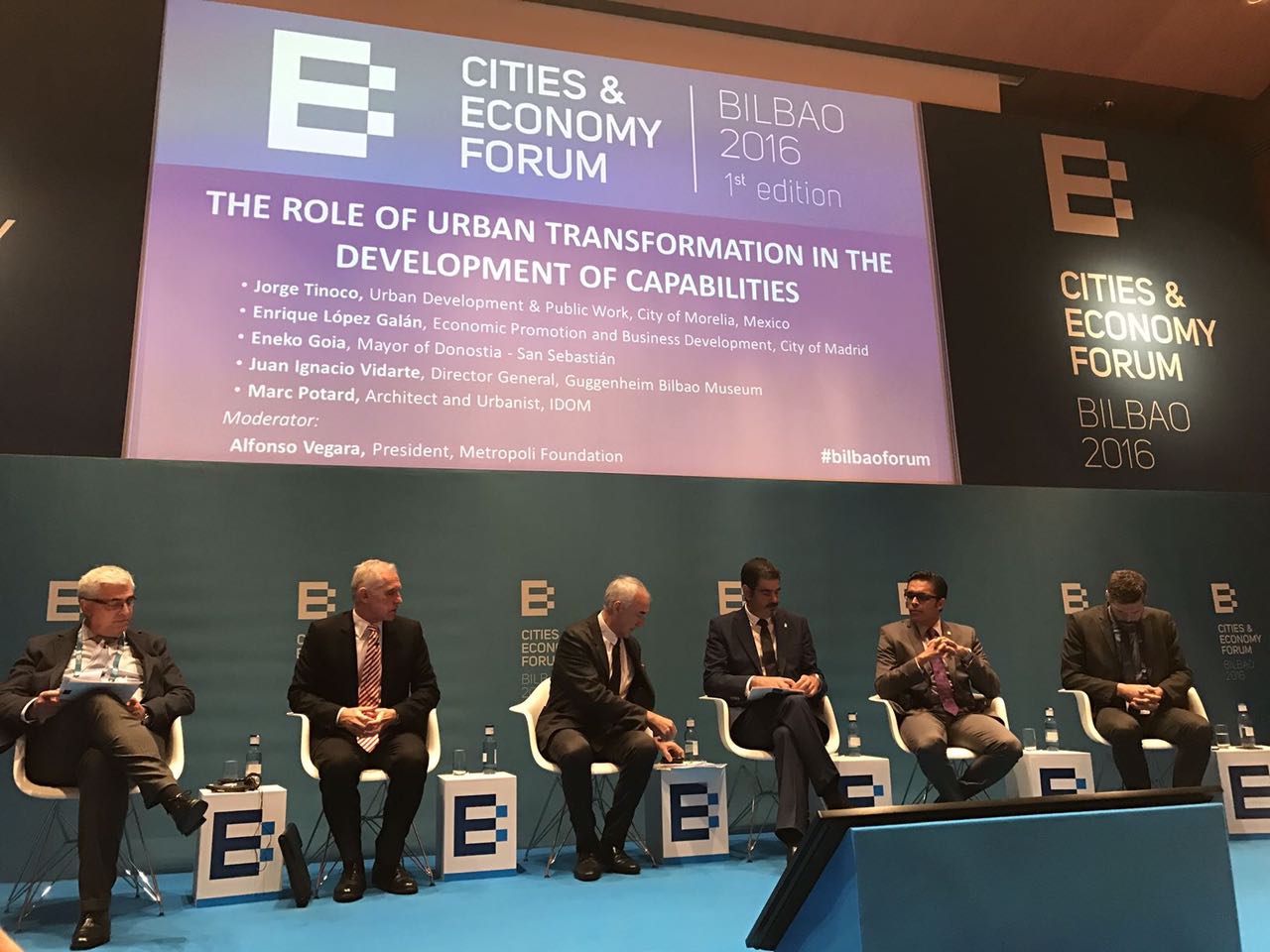 Morelia, Mich., a 27 de noviembre de 2016.-Con el propósito de fortalecer las líneas de acción del Plan Morelia NExT, el Ayuntamiento expuso los pormenores de esta estrategia de trabajo a largo plazo en el Foro “Cities and Economy Bilbao 2016”, el cual reunió a importantes líderes empresariales y gubernamentales de diferentes países en un espacio en el que se discutieron los retos que enfrentan las ciudades en materia de evolución económica, tecnológica, social y medioambiental.