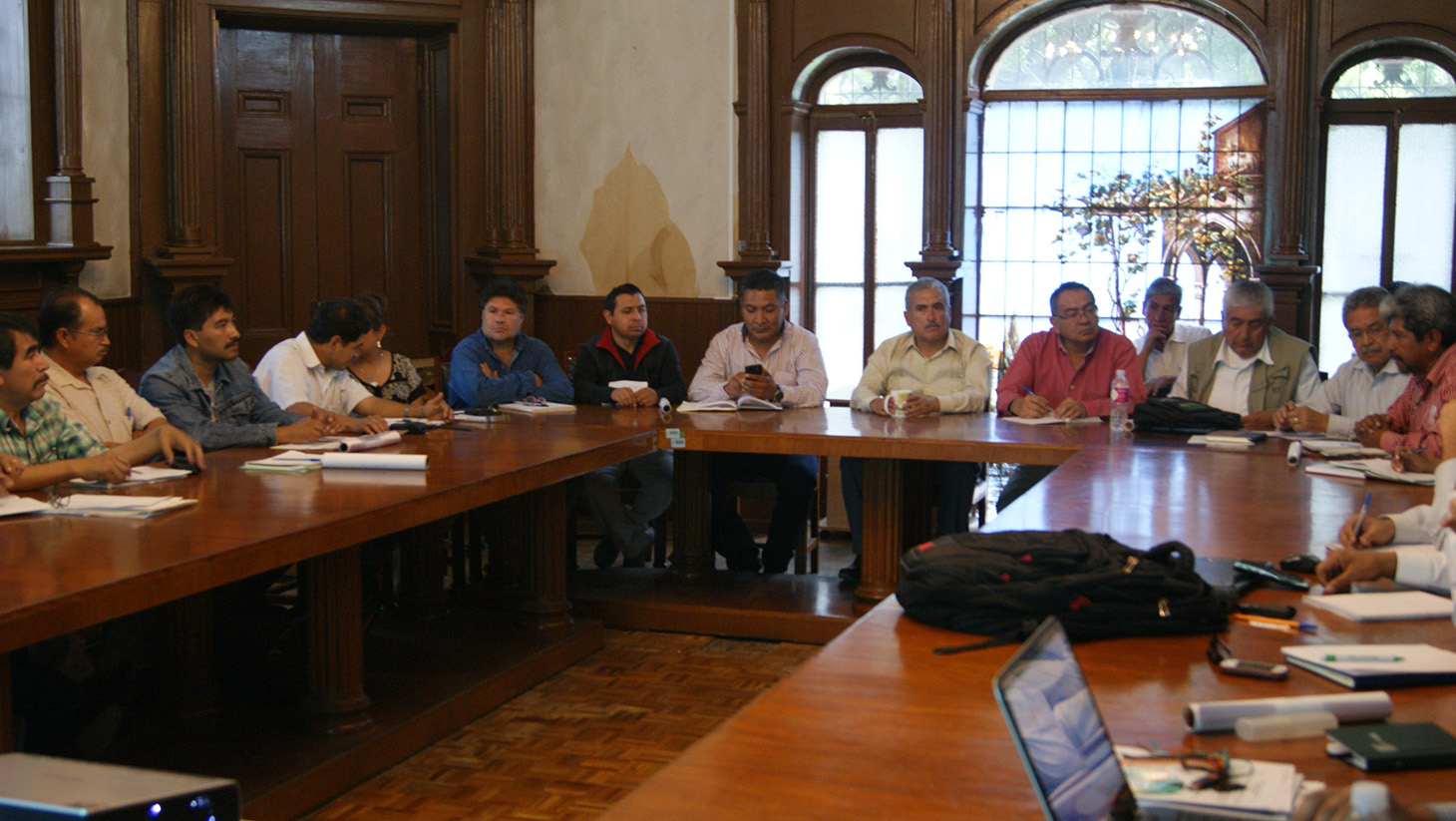 Morelia, Mich., a 26 de abril de 2016.- Como parte de los compromisos gubernamentales para el fortalecimiento de los programas que se ejecutan en Michoacán en materia forestal, el director general de la Comisión Forestal del Estado (Cofom), Roberto Pérez Medrano, se reunió hoy con los responsables de las diez delegaciones regionales de la dependencia.
