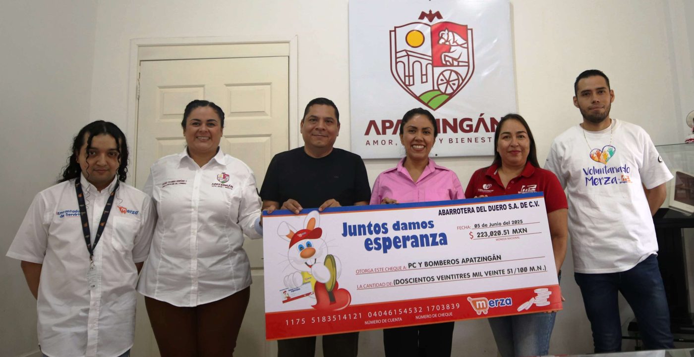 Apatzingán, Mich., 8 de Junio de 2025.- El Ayuntamiento de Apatzingán recibió un importante donativo por parte de Fundación Merza, resultado de la generosidad de los clientes que participaron en la campaña de redondeo en tiendas del grupo. Este recurso será destinado al fortalecimiento de Protección Civil y Bomberos, corporación que atiende emergencias de forma permanente en el municipio.