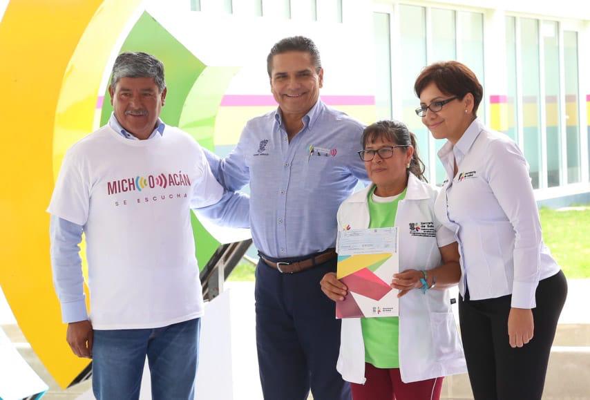 En el evento, el gobernador Silvano Aureoles y la secretaria de Salud, Diana Carpio, entregaron cheques a las trabajadoras auxiliares de salud, quienes periódicamente podrán recibir un estímulo económico.