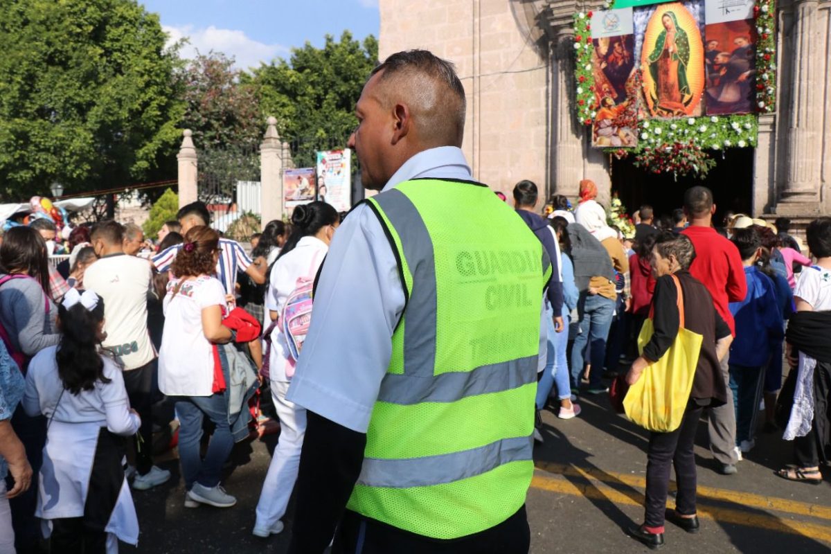 Con motivo de las celebraciones por el Día de la Virgen de Guadalupe y derivado a la alta afluencia que se presenta en la Calzada de San Diego de la capital michoacana, el Secretario de SP, Maestro José Alfredo Ortega Reyes, instruyó a los guardias civiles intensificar la labor operativa y preventiva en la zona y sus alrededores, efectuando acciones pertinentes para una libre, fluida y segura vialidad vehicular y peatonal.