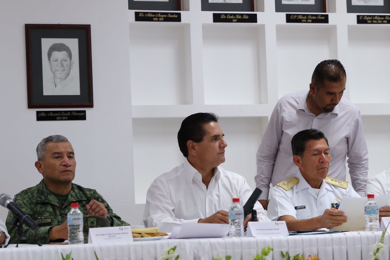 Estuvieron presentes en esta reunión el secretario de Gobierno, Adrián López Solís; el presidente municipal de Lázaro Cárdenas, Armando Carrillo Barragán; el secretario de Seguridad Pública, Juan Bernardo Corona Martínez; el comandante de la 10 Zona Naval, vicealmirante Gonzalo Ortiz Guzmán; el comandante de la 43 Zona Militar, general Cruz Isaac Muñoz Navarro; el procurador general de Justicia, José Martín Godoy Castro.