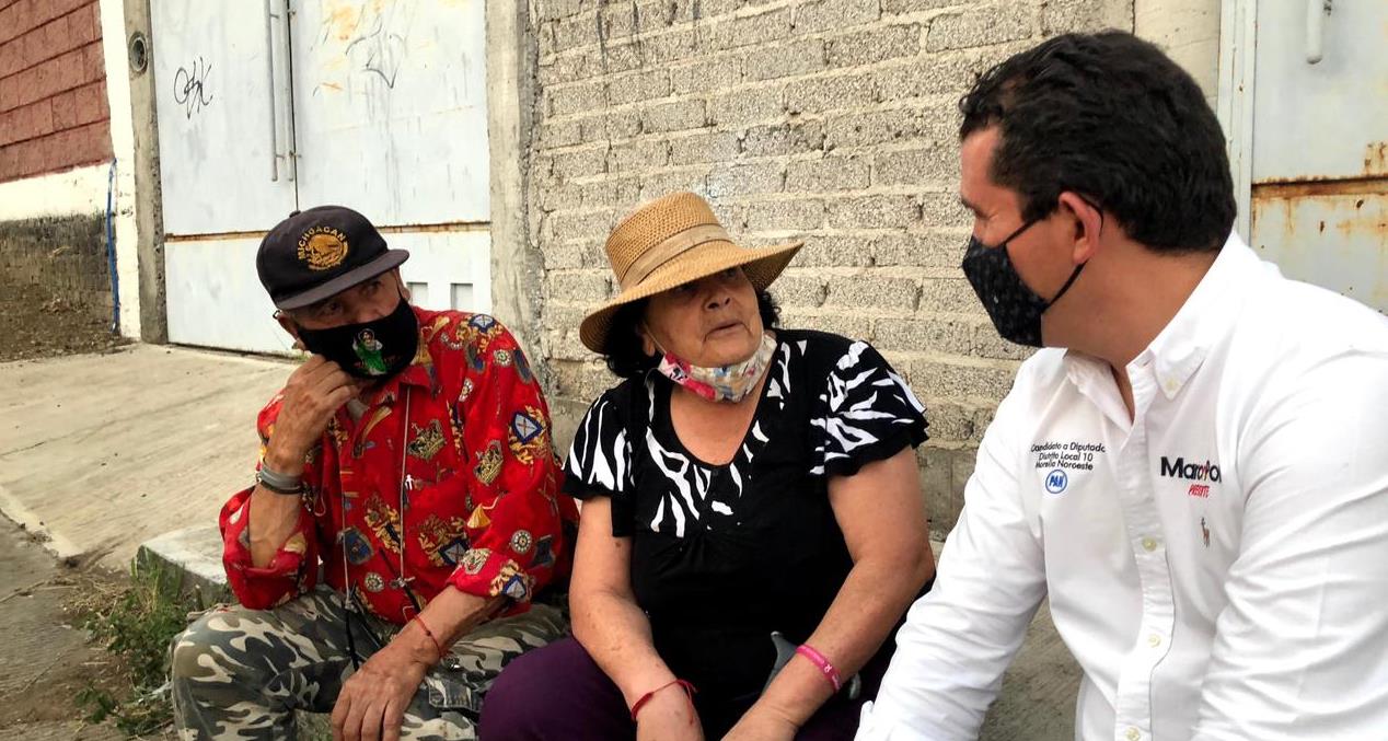 Morelia, Mich., 23 de abril del 2021. Vecinos de diversas colonias del poniente de Morelia solicitaron a Marco Polo Aguirre Chávez, candidato de la candidatura común por PRI, PAN y PRD del distrito 10 local, sea el gestor ante instancias federales, estatales y municipales.