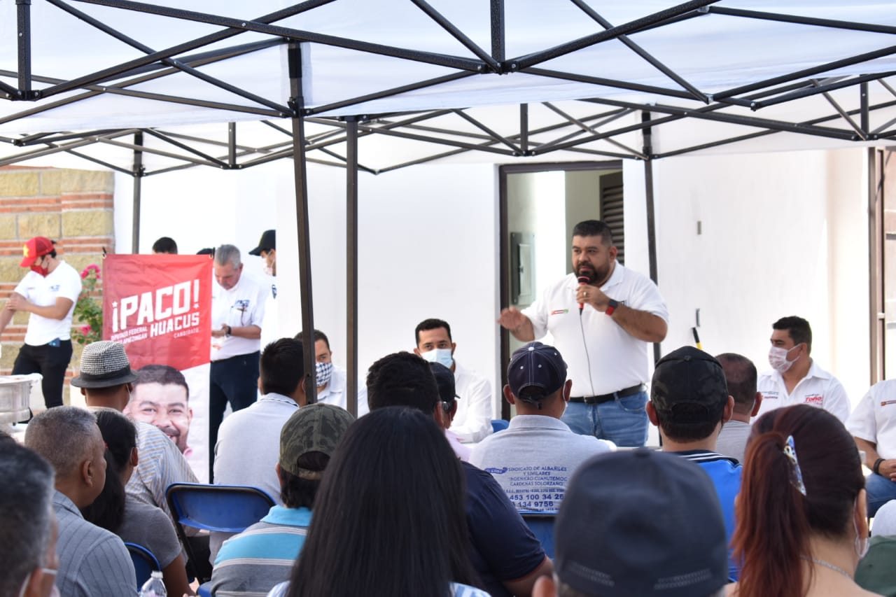 Apatzingán, Mich., 03 de mayo del 2021. Al garantizar gestiones para promover obra pública en el municipio y generar empleo a los trabajadores de la construcción en Apatzingán, el candidato a la Diputación Federal de la Coalición «Juntos Hacemos Historia», Paco Huacus afirmó que debe fortalecerse la economía regional de la tierra caliente.