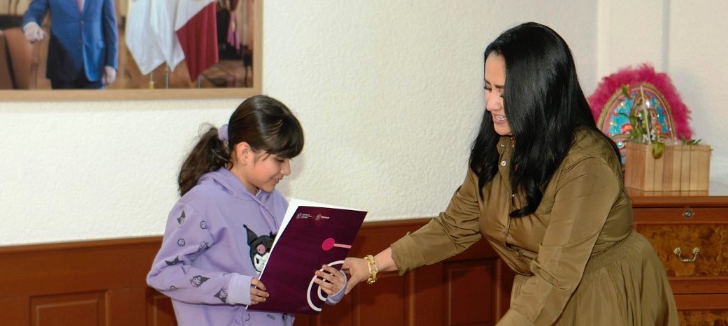 Morelia, Mich, 31 de Enero de 2025.- Niñas y niños que participaron en la convocatoria “Mi ciudad, mi teleférico” recibieron reconocimientos por su talento y creatividad, donde la titular de la Secretaría de Desarrollo Urbano y Movilidad (Sedum), Gladyz Butanda Macías destacó su compromiso de trabajar por ciudades más incluyentes y sostenibles.