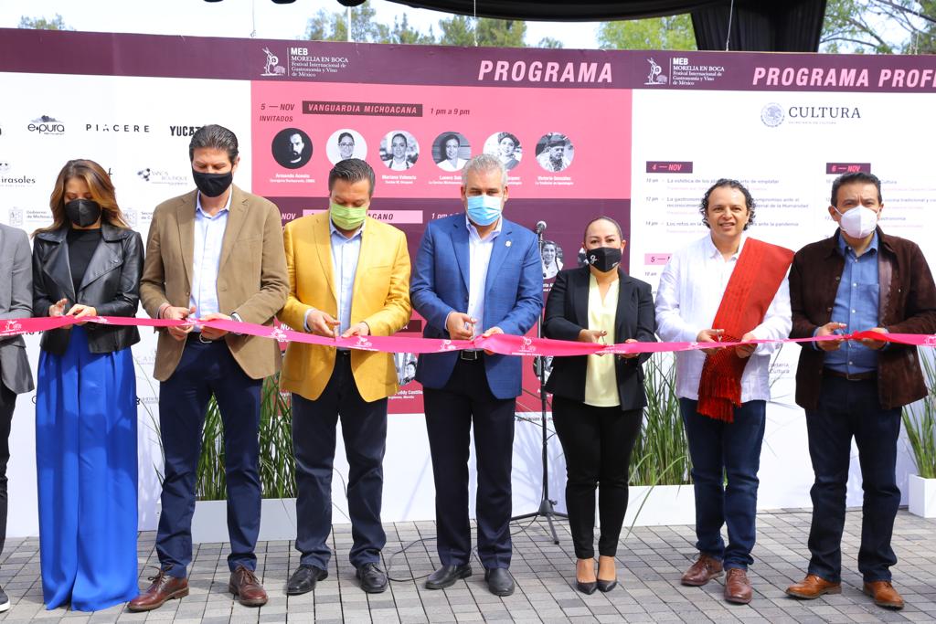 Morelia, Mich., 5 de Noviembre del 2021.- Al inaugurar la XI Edición del Festival Morelia en Boca, el gobernador Alfredo Ramírez Bedolla invitó al sector restaurantero a impulsar el «maridaje» y la presentación de sus platillos con artesanías de Michoacán como las vajillas de Capula o Tzintzuntzan.