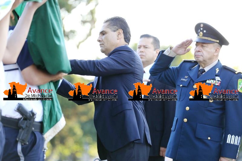 Acompañado de los representantes de los Poderes Legislativo y Judicial del Estado, así como del Gabinete Legal y Ampliado del Gobierno de Michoacán, además del Ayuntamiento de Morelia, el mandatario michoacano izó el Lábaro Patrio a media asta, en memoria de las víctimas de los granadazos del 15 de septiembre de 2008.