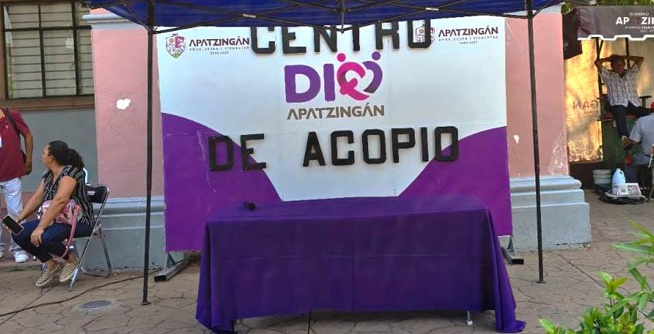 Apatzingán, Mich, a 26 de Julio de 2025.- La presidenta municipal Fanny Arreola con el objetivo de brindar apoyo humanitario a las familias que enfrentan situaciones de emergencia, el Gobierno Municipal de Apatzingán, a través de DIF Municipal, habilitó un Centro de Acopio en los Arcos de la Presidencia Municipal.