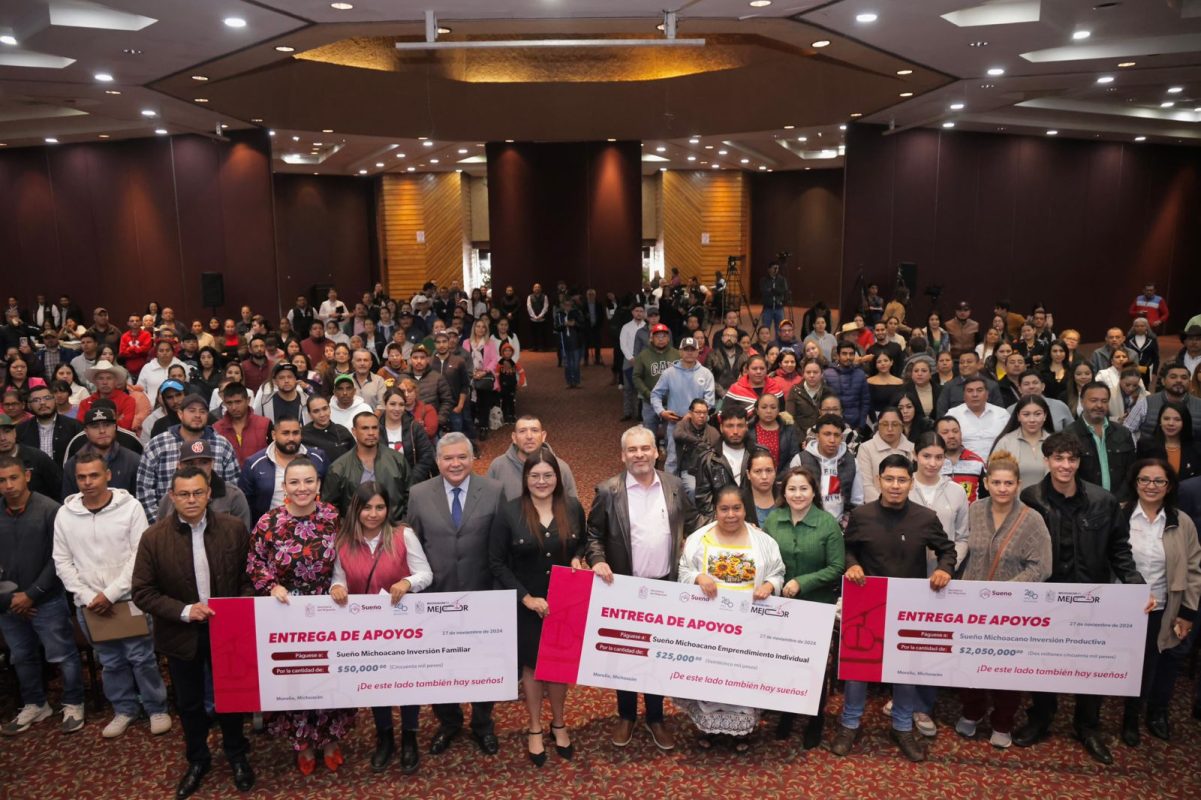 El mandatario destacó que los apoyos que van desde los 25 mil a los 125 mil pesos, son de gran beneficio para los migrantes, ya que permiten mejorar sus condiciones de vida, además de que a través de la Semigrante se cuenta con programas de capacitación para los michoacanos que radicaban en Estados Unidos y ahora se encuentran en retorno.