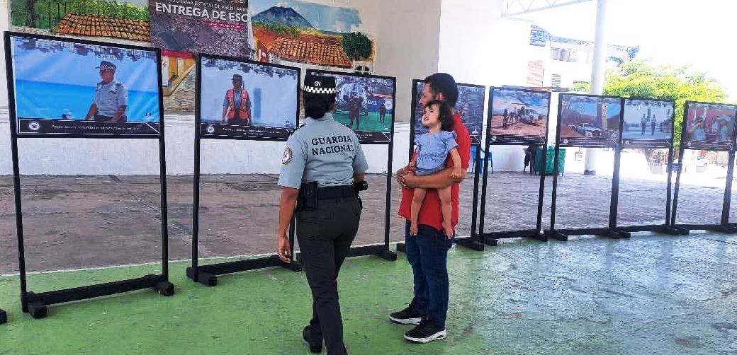 La Exposición fotográfica se encuentra en la Plaza Principal y forma parte de la campaña “La Guardia Nacional está contigo”, donde acuden incluso estudiantes de los diversos planteles educativos.