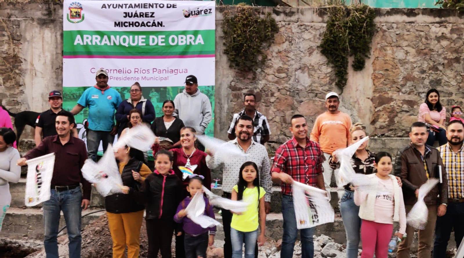 Municipio de Juárez, Mich., a 12 de Enero del 2023.- Acompañado de los miembros del cabildo, funcionarios y habitantes de la localidad Puerto de Matamoros, el alcalde Cornelio Ríos Paniagua puso en marcha los trabajos para la construcción de la techumbre del lugar.