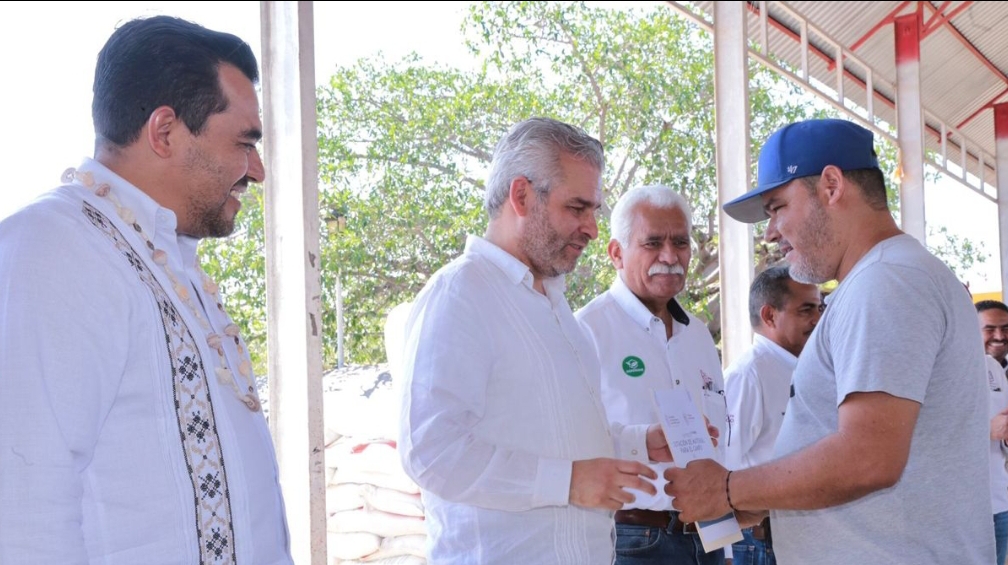 «Hoy hacemos entrega de 2 mil 310 toneladas para productores de Aquila, Coalcomán, Coahuayana y Chinicuila, sumando esfuerzos gobierno estatal y federal en beneficio del