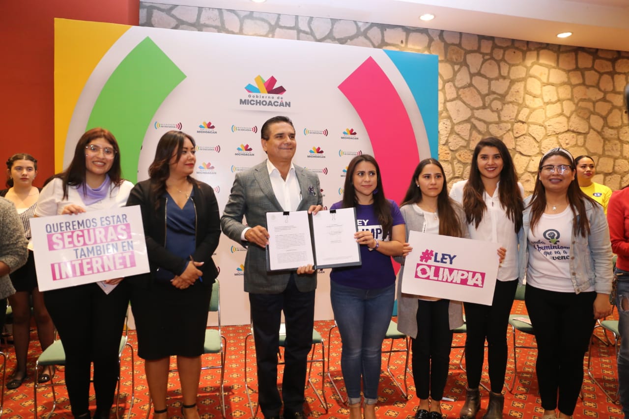“El ánimo y la determinación de mujeres jóvenes michoacanas es el impulso que me hace dar este paso para frenar la cadena de violencia virtual y el acoso digital que daña la dignidad femenina”, enfatizó el Gobernador Aureoles Conejo, al firmar la iniciativa que, por primera vez a nivel nacional, se propone desde el seno de una estructura de Gobierno estatal.