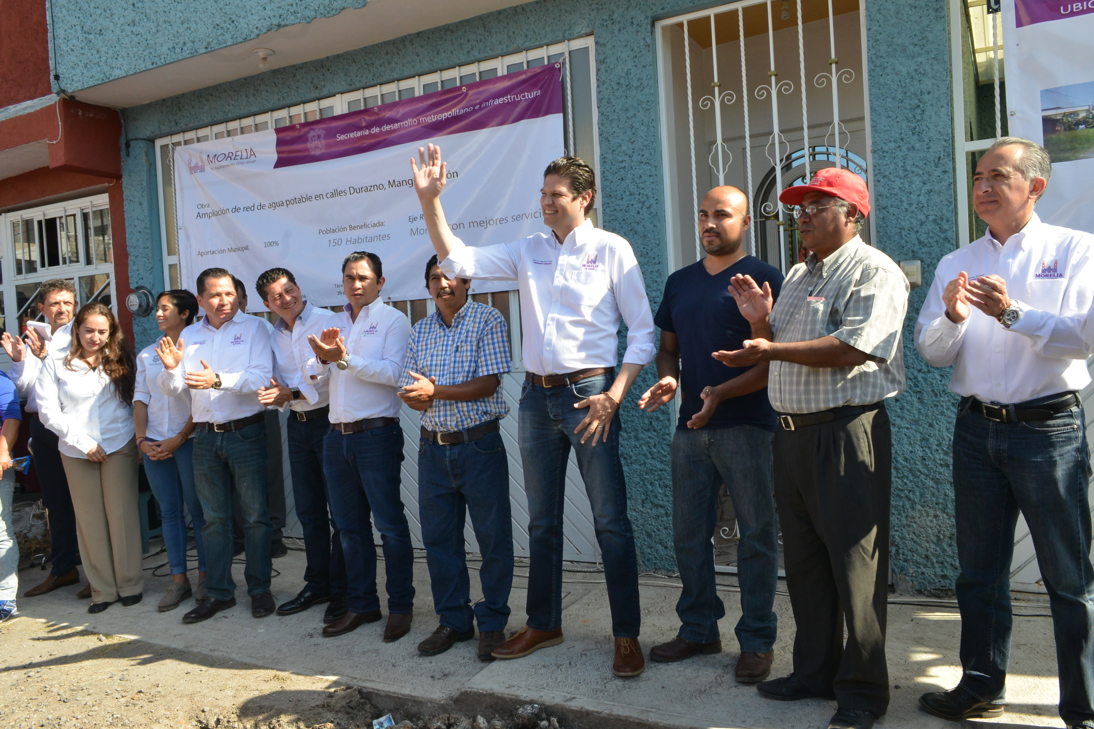 Morelia, Mich., a 31 de agosto de 2016.- Con paso firme para que los morelianos cuenten con los servicios básicos, el Presidente Municipal de Morelia, Alfonso Martínez Alcázar dio el «Banderazo Inicial» de arranque de la obra de ampliación de la red de agua potable en las calles Durazno, Mango y Limón de la colonia La Huertita.