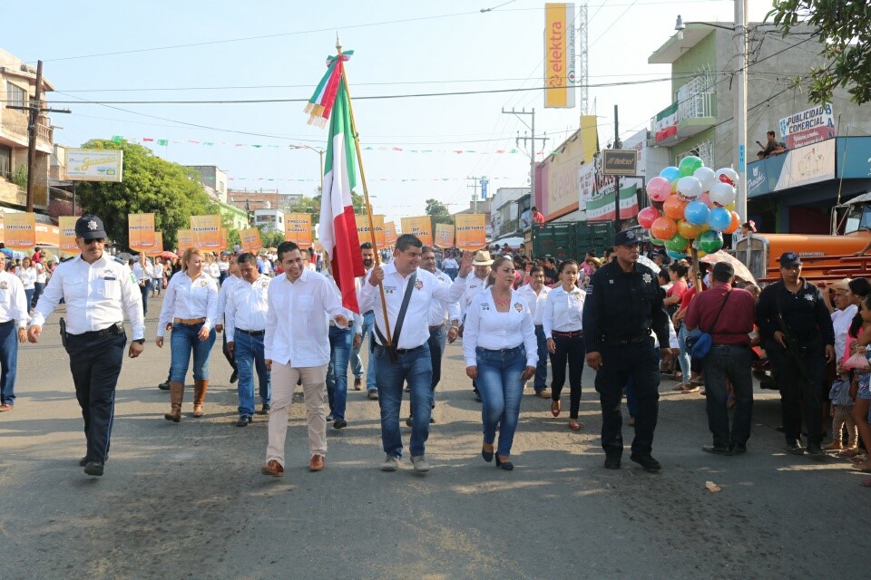 El desfile estuvo encabezado por el alcalde Salvador Ruiz Ruiz, Sandra Patricia Contreras Cárdenas, Presidenta del Dif Municipal, síndico, regidores, asi como también de directores de las diferentes dependencias de la Administración municipal.