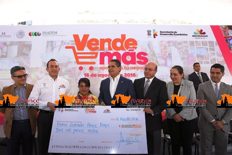 Morelia, Mich., a 16 de agosto de 2016.- El Gobernador del Estado, Silvano Aureoles Conejo, arrancó uno de los programas para fortalecer la economía estatal a partir del impulso a los micro, pequeños y medianos negocios (Mipymes), Vende más, a través del cual se favorecerá en una primera etapa a casi mil 500 propietarios de 60 municipios de la entidad, con una inversión tripartita de 26.2 millones de pesos.