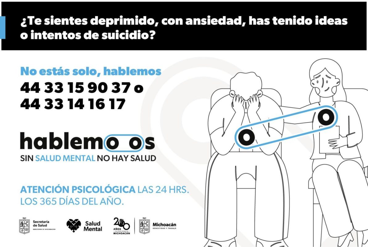 Al llamar a los números 443 314 1617 y 443 315 9037, los usuarios pueden conversar con psicólogos de la Secretaría de Salud de Michoacán (SSM), especializados en atender crisis nerviosas, intentos suicidas y ataques de pánico, En el último año, “Hablemoos” ha otorgado más de mil 600 consultas a hombres y mujeres de 14 a 72 años.