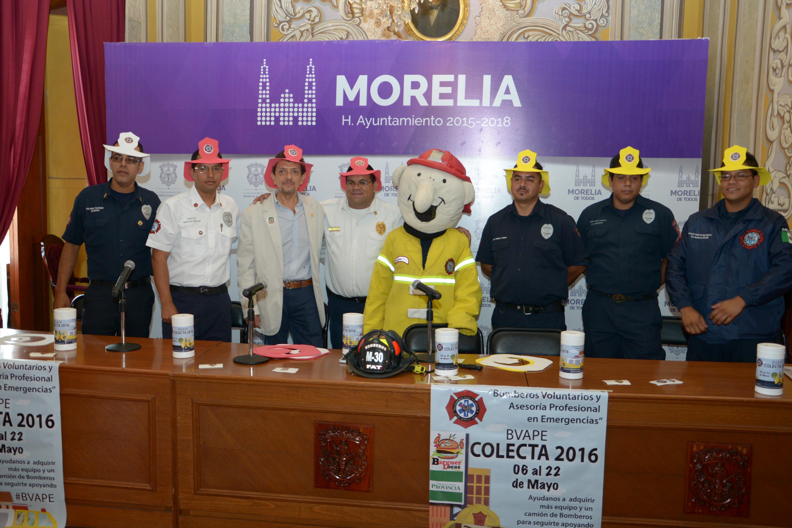 Morelia, Mich., a 07 de Mayo del 2016.,- En el ánimo de continuar trabajando de manera coordinada con la ciudadanía para salvaguardar la vida de los morelianos y brindar auxilio en caso de emergencias, el Gobierno Municipal se sumó a la Colecta 2016 de la Asociación Civil de Bomberos Voluntarios y Asesoría Profesional de Emergencias (BVAPE), que arrancó este viernes y culminará el 12 de mayo.