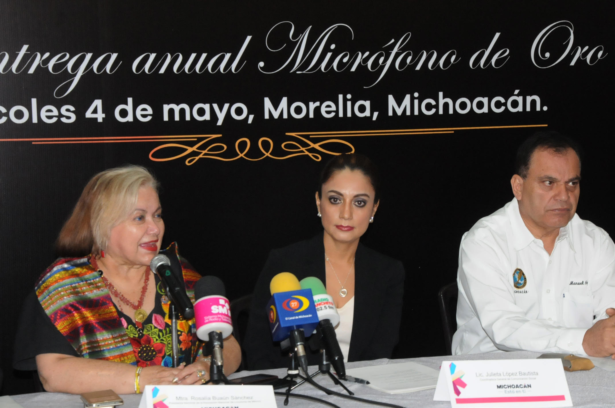 El micrófono de Oro es la máxima presea que otorga la Asociación Nacional de Locutores en reconocimiento a la trayectoria de los más destacados profesionales del mundo del arte, la cultura y el espectáculo.