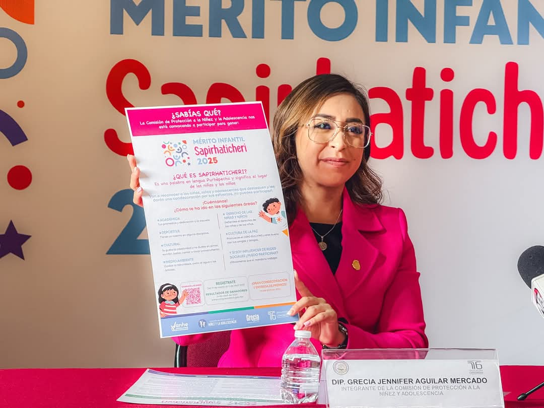 Morelia, Mich., a 21 de Marzo del 2025.- La diputada Grecia Jennifer Aguilar Mercado integrante de la Comisión a la Protección a la Niñez y a la Adolescencia en la LXXVI Legislatura Local, lanzó una convocatoria para que niños y niñas de 6 a 12 años participen en el Concurso al Mérito Infantil Sapirhaticheri 2025.