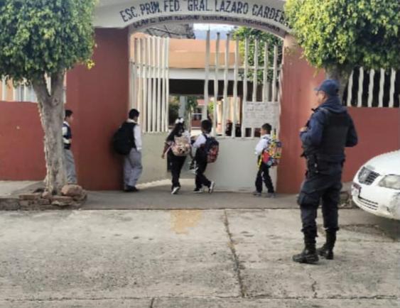Morelia, Mich, 19 de febrero de 2024.– Para dar seguridad perimetral e inhibir incidentes, personal de la Guardia Civil establece presencia en instituciones de todos los niveles educativos, como parte del Programa Escuela Segura, informó la Secretaría de Seguridad Pública (SSP).