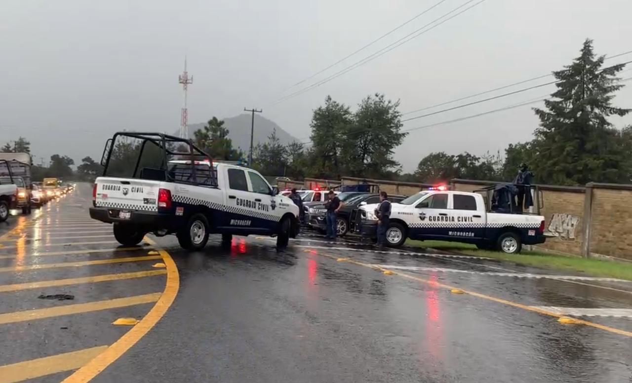 Uruapan-Salvador Escalante, Mich., 13 de agosto del 2022.- Ante los bloqueos registrados este día en la región Uruapan y Salvador Escalante, el personal de la Guadia Civil (GC), se movilizó para garantizar la seguridad de la población.