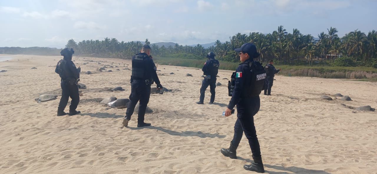 En la playa de Ixtapilla, elementos de la Guardia Civil emprendieron movilizaciones para inhibir afectaciones a este espectáculo natural que cada año atrae a miles de turistas a la Costa Michoacana.