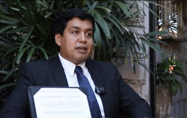 Morelia, Mich., 19 de Diciembre de 2023.- La pasión por la enseñanza es algo que desde corta edad ha estado presente en la vida del profesor de primaria Eduardo Luis Altamirano Chávez, uno de los 15 ganadores michoacanos del Premio a la Práctica Docente 2023, por su labor para hacer valer el derecho a la educación de niñas y niños migrantes.