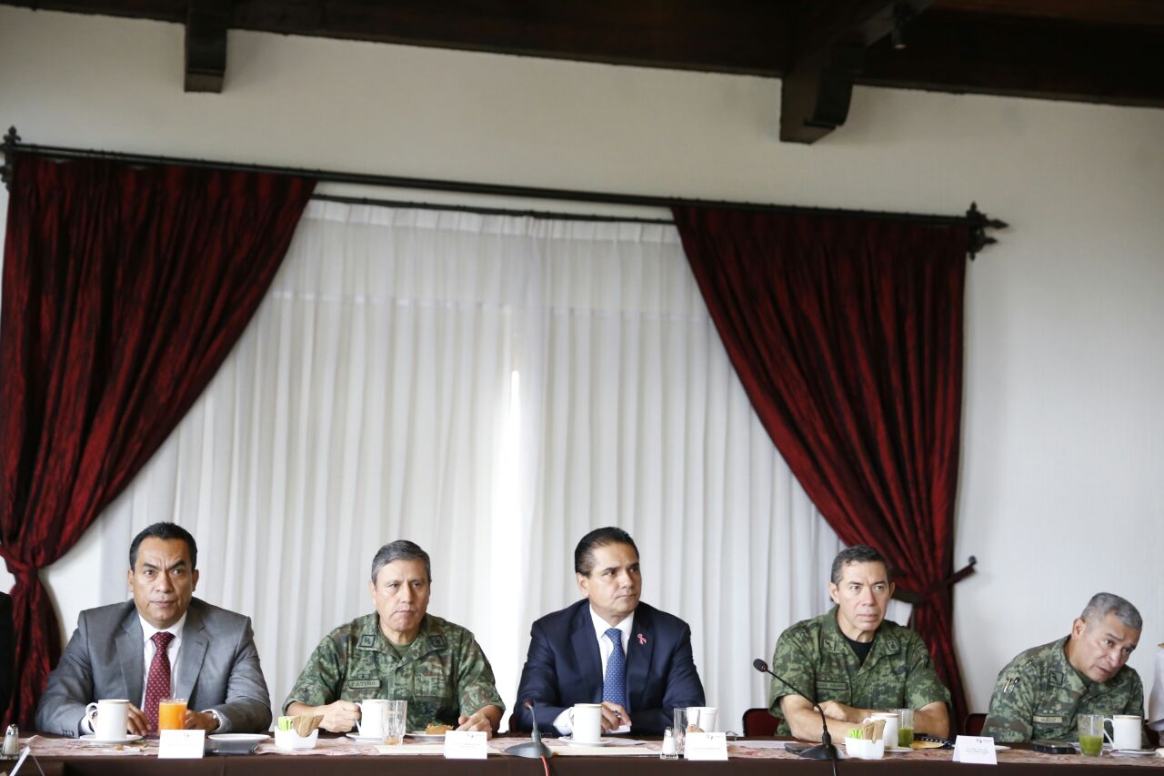 Además, el delegado del CISEN, Fernando Castro Miranda; el comandante de la 43 Zona Militar, general Cruz Isaac Muñoz Navarro; la delegada de la PGR, Bertha Paredes Garduño; el coordinador de la Policía Federal en el estado, Rafael Abundiz Núñez; el subsecretario de Seguridad Pública, Carlos Gómez Arrieta, entre otras autoridades estatales y federales.