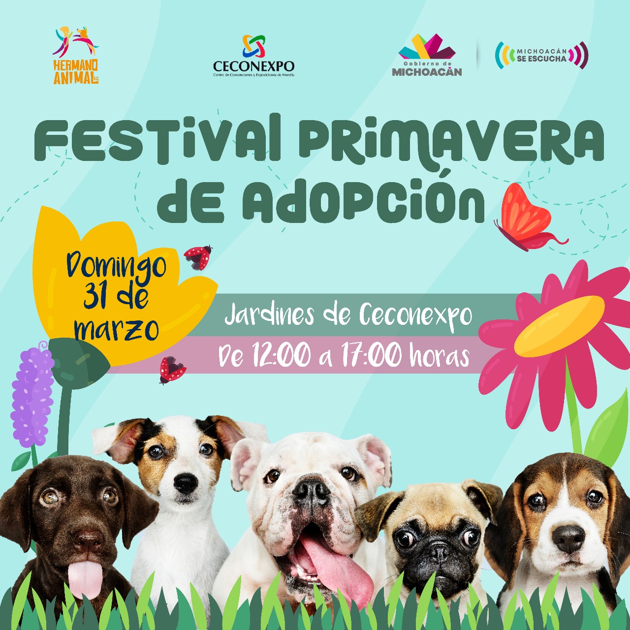 Morelia, Michoacán, a 26 de marzo de 2019.- La Primavera irradia alegría y vitalidad, es la estación del año que propicia el compañerismo y la solidaridad y una excelente oportunidad para participar en el Festival Primavera de Adopción 2019, que se realizará el próximo domingo 31 de marzo de las 12:00 a las 17:00 horas, en los jardines del Centro de Convenciones y Exposiciones de Morelia (Ceconexpo).