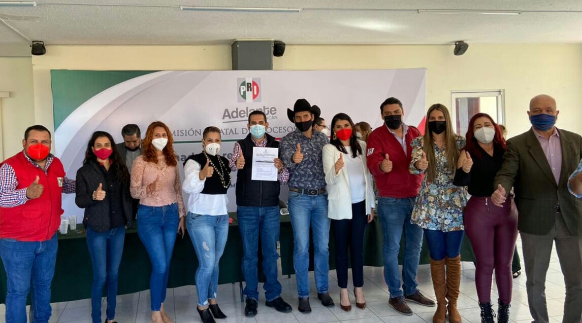 Morelia, Mich., a 17 de Febrero del 2021.- la tarde de éste miércoles y arropado con todo el apoyo y sectores del Partido Revolucionario Institucional el licenciado Uriel Chávez Mendoza recibió su documento y apoyo rumbo a la candidatura a la alcaldía de Apatzingan.