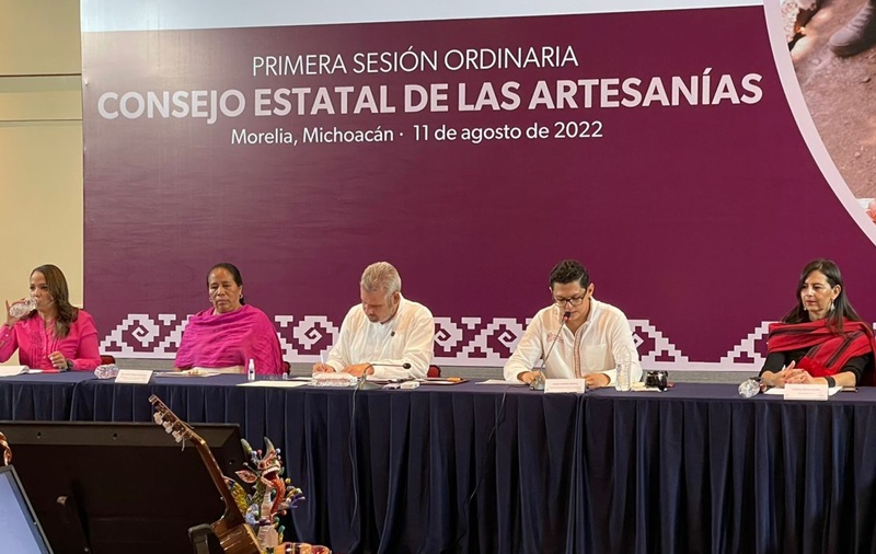 Morelia, Mich., 11 de agosto de 2022.- En el marco de la primera sesión ordinaria del Consejo Estatal de las Artesanías, se propone como una de las primeras tareas a los miembros, la integración de un proyecto para complementar en la Ley actual, la incorporación de las regiones y ramas artesanales oficialmente establecidas, para que sea remitida al Congreso del Estado, a través de Gobernador como Presidente del Consejo; refirió el director general del Instituto del Artesano Michoacano, Cástor Estrada Robles.