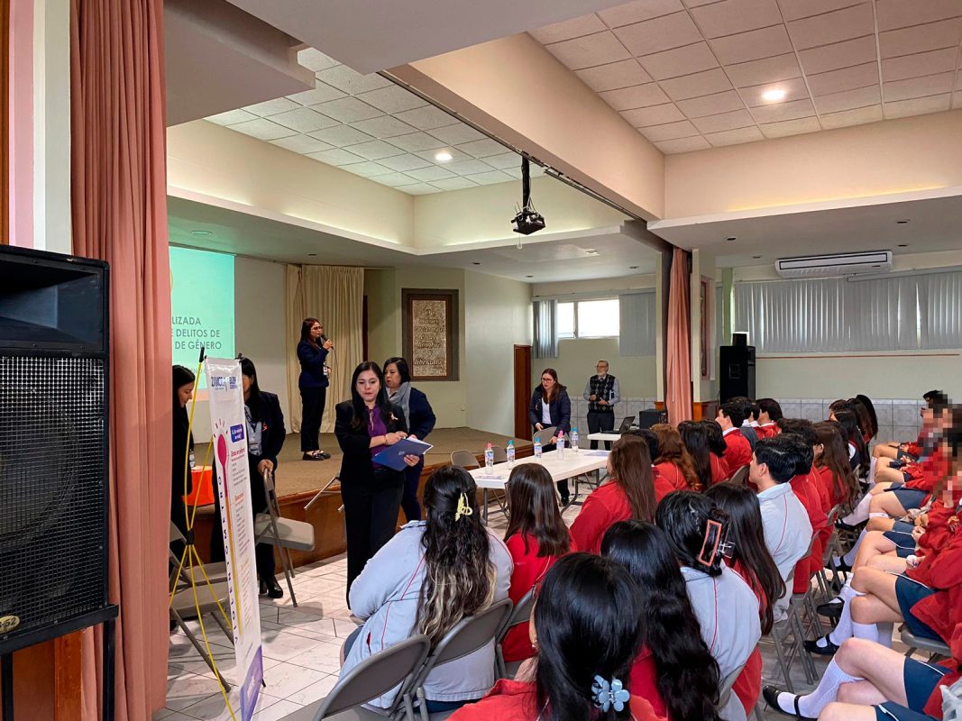 Al plantel educativo se trasladó personal de esta fiscalía especializada con el fin de informar a las y los estudiantes sobre el impacto y las consecuencias que tiene el compartir contenido audiovisual íntimo sin consentimiento.