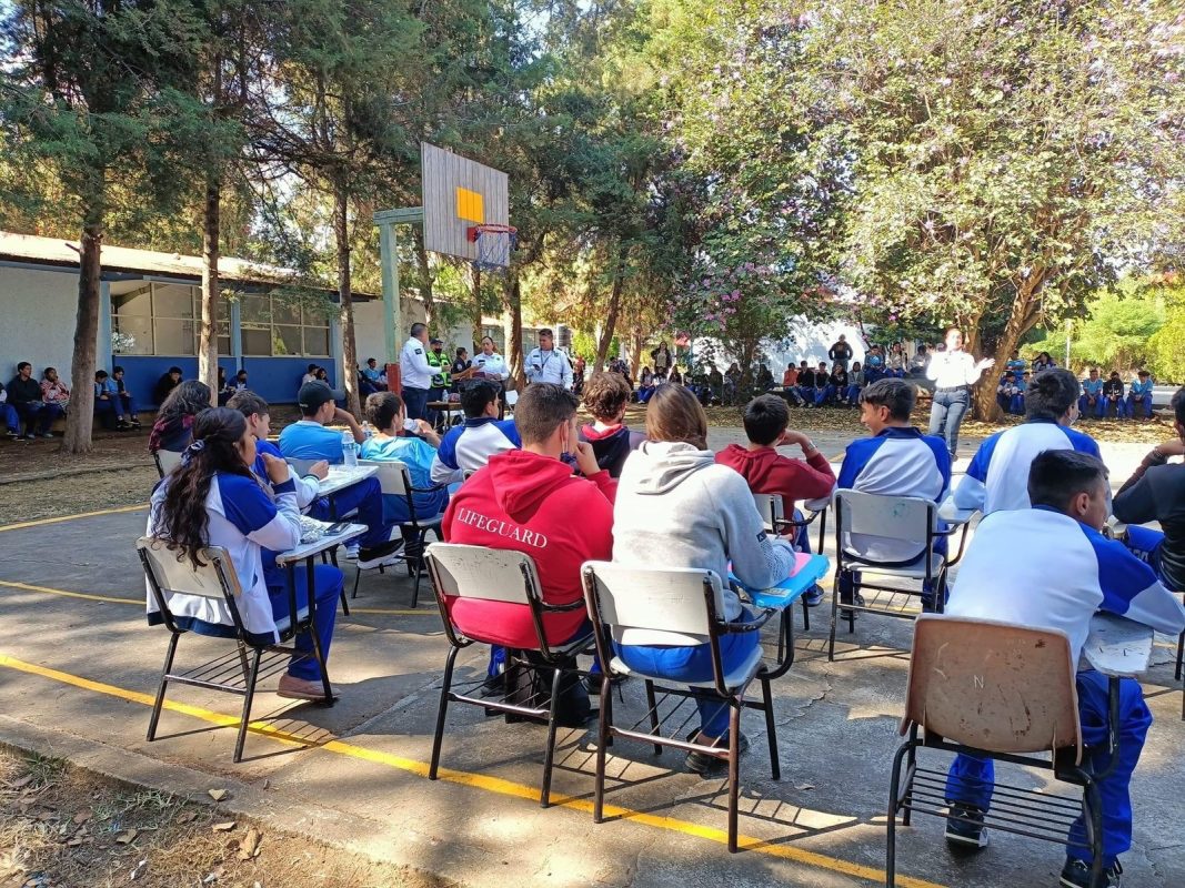 En el municipio de Cotija, personal adscrito a la Dirección de Tránsito y Movilidad asistió al Colegio de Bachilleres, ubicado en el camino a Tocumbo, a fin de otorgar las herramientas necesarias a las y los adolescentes, mediante el taller Adiciones.