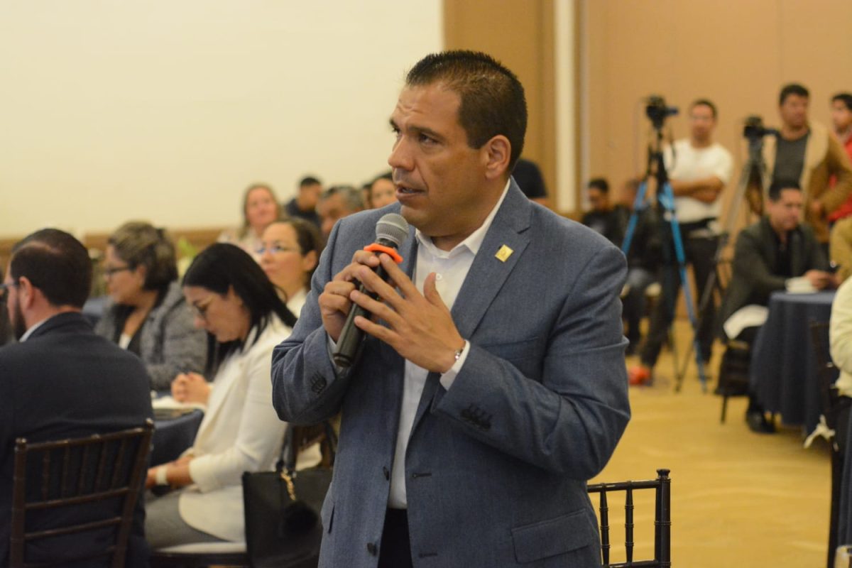 Morelia, Mich., 4 de Octubre 2023.- El Presidente Municipal de Tarímbaro, Bladimir González, se dirigió hoy a la Sesión de la Comisión Consultiva 2023 del Aeropuerto Internacional de Morelia (AIM), destacando la necesidad de elevar este importante punto de conexión aérea a un aeropuerto de carga.