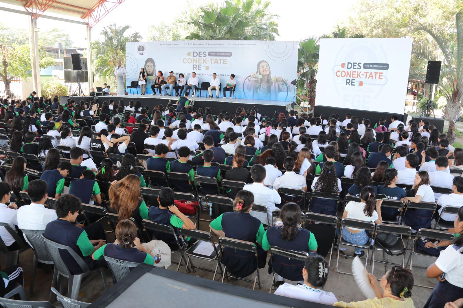 Lázaro Cárdenas, Mich., a 28 de Noviembre de 2025.- Con el propósito de fortalecer la prevención del delito en el entorno digital y ofrecer a jóvenes herramientas para un uso seguro de las tecnologías, la Fiscalía General del Estado de Michoacán (FGE) llevó a cabo en Lázaro Cárdenas, el foro preventivo “DESKONEC-TATE y REKONEC-TATE”, dirigido a alumnas y alumnos del Colegio de Estudios Científicos y Tecnológicos del Estado de Michoacán (CECYTEM).