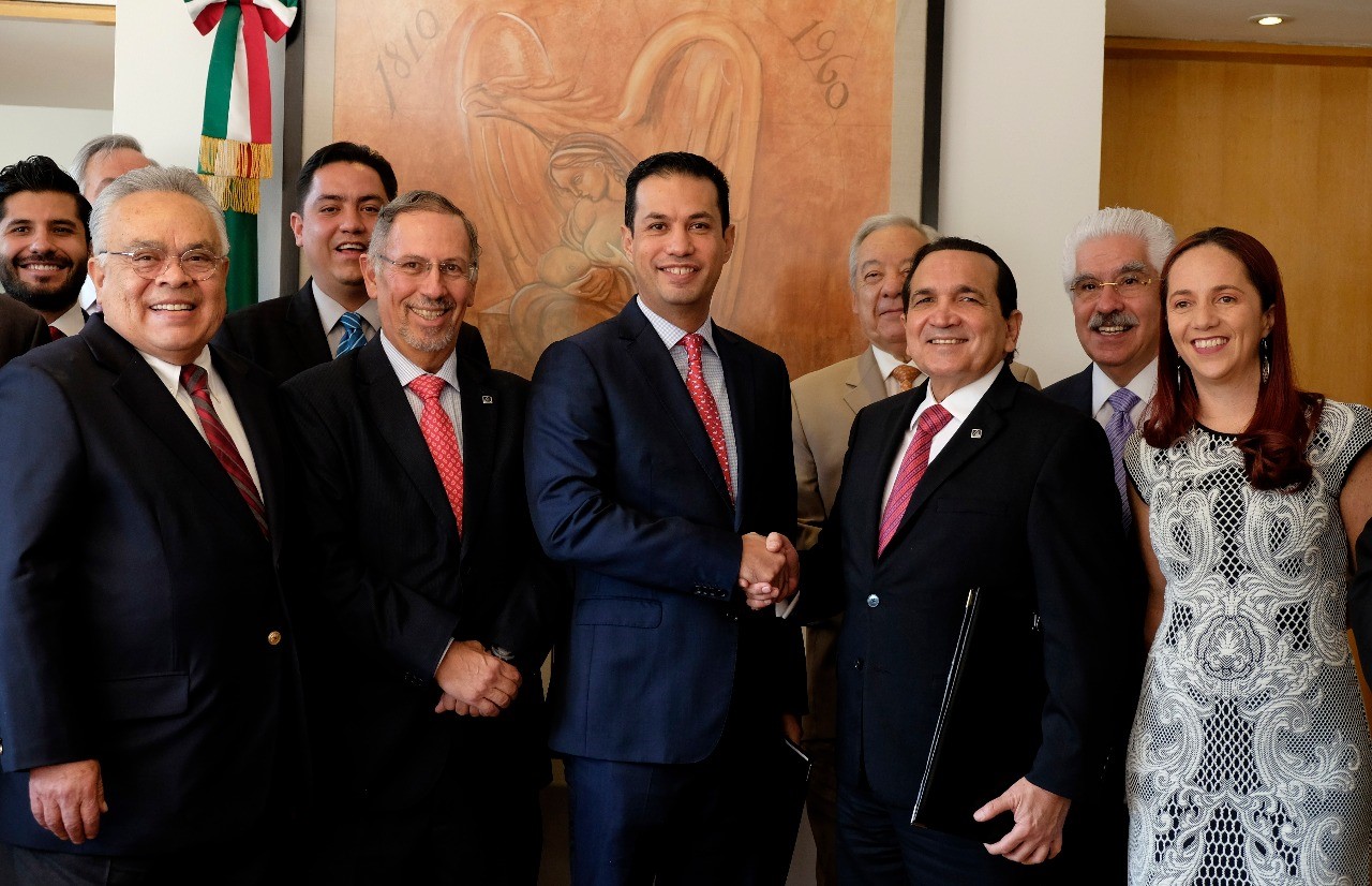 Ciudad de México a 1 de junio de 2018.-El Director General del Instituto Mexicano del Seguro Social (IMSS), Tuffic Miguel, y el Presidente de la Confederación de Cámaras Nacionales de Comercio, Servicios y Turismo (CONCANACO-SERVYTUR), José Manuel López Campos, firmaron un convenio para impulsar las tecnologías de la información y la innovación,con el objetivo de atender programas de interés común en beneficio de los derechohabientes.