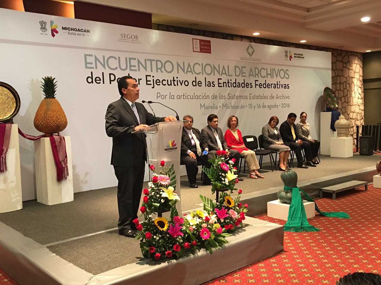 Subrayó que se tiene presente en todo momento el compromiso del Gobernador Silvano Aureoles Conejo para reforzar desde Michoacán el trabajo coordinado que encabeza el Archivo General de la Nación y cada una de las entidades para conformar los Sistemas Estatales de Archivo.