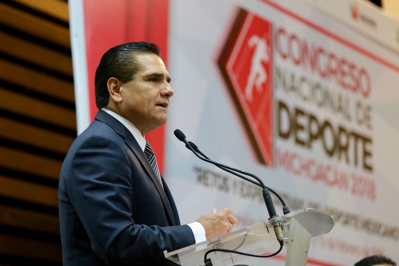 Morelia, Michoacán, a 9 de febrero de 2018.- El deporte es un factor para la cohesión social y la construcción de la tranquilidad en la entidad, afirmó el Gobernador Constitucional Silvano Aureoles Conejo, en el marco de la inauguración del Congreso Nacional de Deporte Michoacán 2018 “Retos y Expectativas del Deporte Mexicano”.