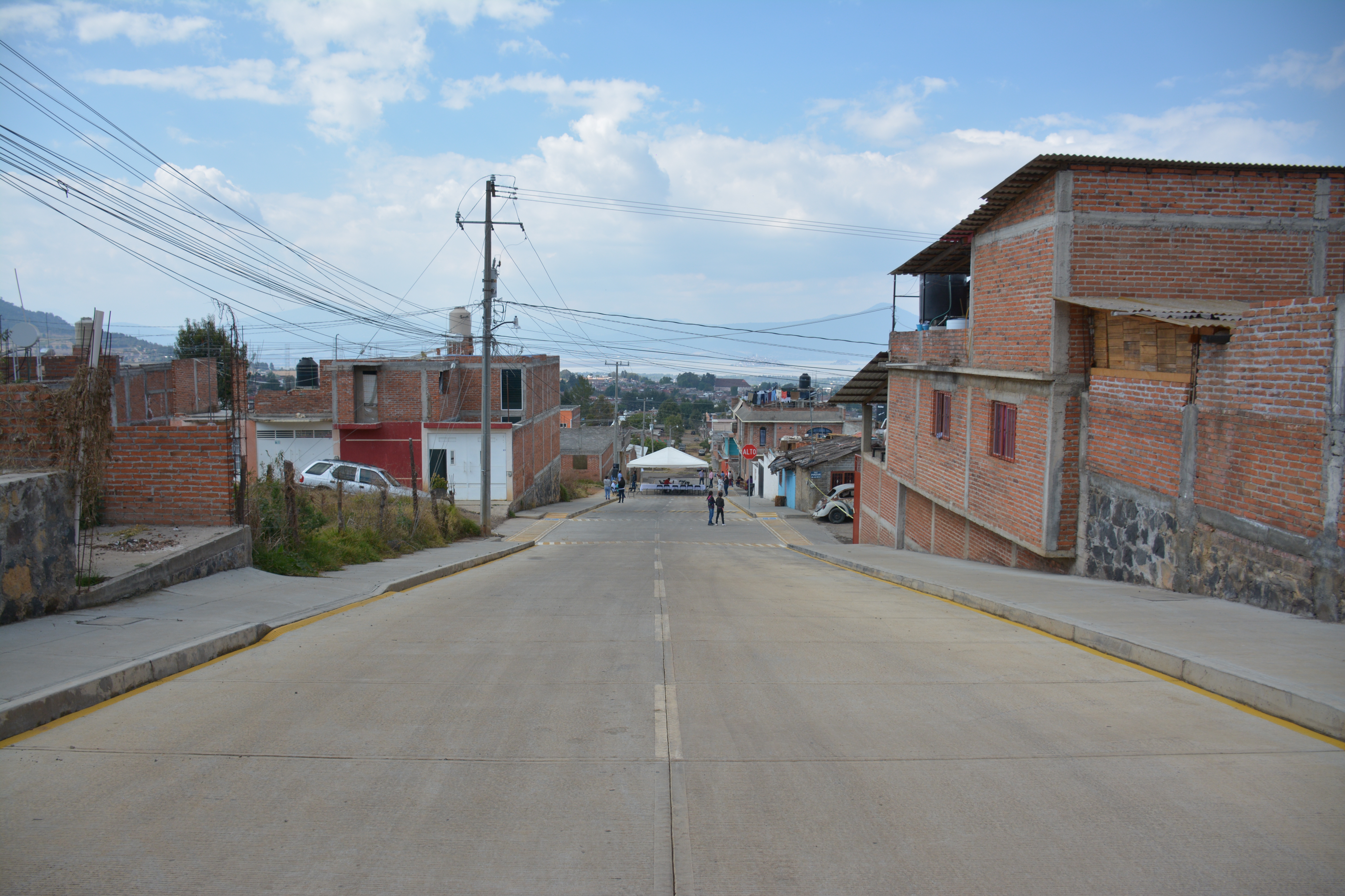En el caso de Huecorio se trata de la calle Las América, principal arteria de la comunidad, donde se realizaron rehabilitación de línea hidráulica, sanitaria y pavimentación, alcanzando una inversión de 4 millones de pesos, mismos que fueron destinados para mil 456 metros cuadrado de pavimento de empedrado en concreto hidráulico, además de que se construyeron 420 metros de banquetas y se instalaron 3 postes con luminarias.