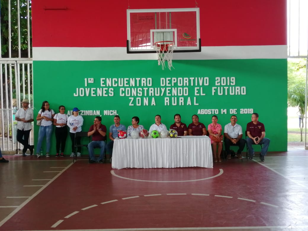 En la unidad deportiva “Adolfo López Mateos” y ante los jóvenes de Apatzingán, Cenobio Moreno, Holanda y San Antonio La Labor, Rafael González Esquivel, secretario particular y representante del presidente municipal, José Luis Cruz Lucatero, felicitó a los muchachos y tutores que determinaron participar en los primeros encuentros deportivos, pues se trata de una actividad de esparcimiento y distracción para los becarios.